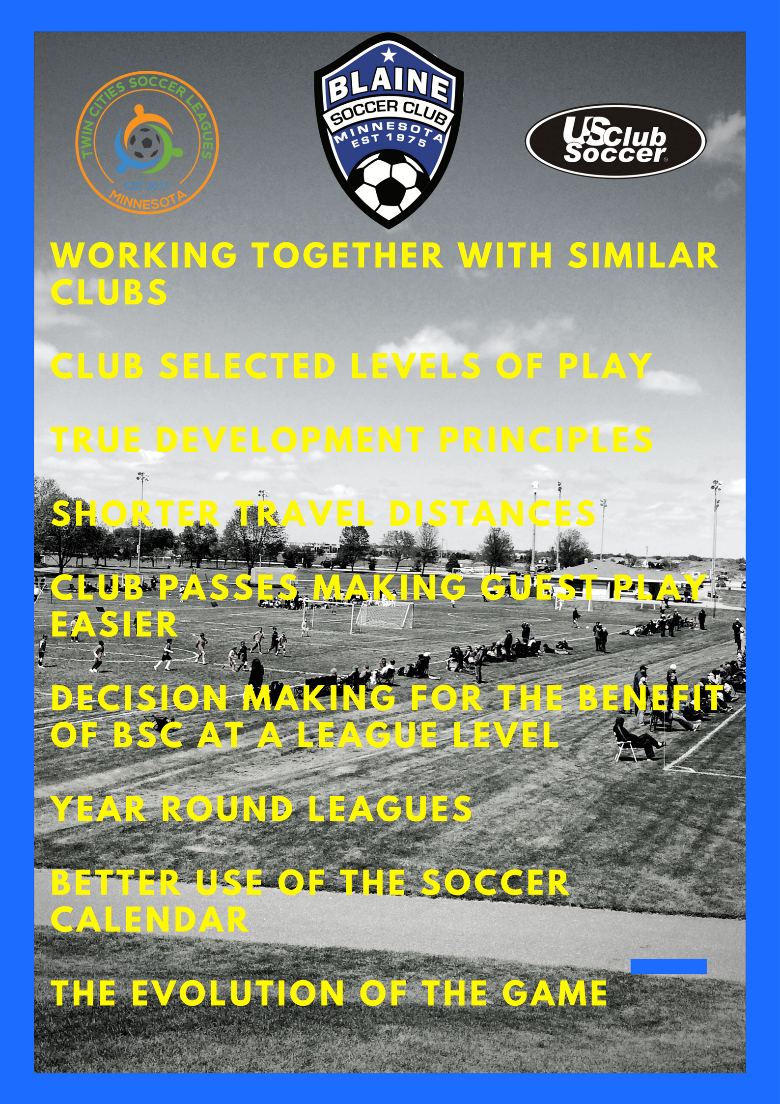 TCSL was formed alongside ambitious clubs looking to work together to ensure the most progressive and dynamic developmental model for their members. Working together for clubs is the future of youth soccer and BSC intends to continue to be a leader in Minnesota soccer.
